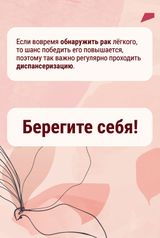 Рекомендация пациентам, прошедшим хирургическое лечение, и тем, кто ни разу не сталкивался с онкологической патологией: внимательно относиться к своему здоровью, выполнять рекомендации врача по динамическому наблюдению (в случае если человек уже столкнулся с патологией), то есть не реже одного раза в год выполнять компьютерную томографию органов грудной клетки.