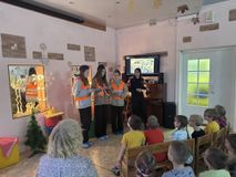 14 декабря в гостях у ребят подготовительной и старшей групп были инспектор отдела пропаганды ГИБДД Пахомова Арина Сергеевна и волонтеры МОУ "Гимназии № 30". Дети еще раз вспомнили о правилах безопасного поведения на дороге в зимний период, в том числе о необходимости иметь на одежде светоотражающие элементы и, конечно же, о том, как важно не терять бдительности во время катания на горке. Будьте предельно осторожны и внимательны!