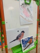 Дети средней группы «Ромашки» , 9 января отмечали «День снегиря». Читали стихи, рассказы об интересной зимующей птице Республики Карелия. Дети рисовали снегиря, а Даша и Алиса сделали дома поделки.