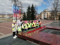 Прохладная погода не помешала проведению такого важного мероприятия. Оно состоялось и прошло на достойном уровне. Дети рассказали стихи о героях, а также исполнили песню «Катюша». Ребята невероятно собраны, серьёзны. Рассуждают о важности мира и добра для каждого человека, о счастье жить и о весёлом детстве. Благодаря родителям и педагогам, дети вспоминают героев своей семьи, передают рассказы старшего поколения, сохраняют историческую память. Вместе с родителями дети возложили цветы к монументу.